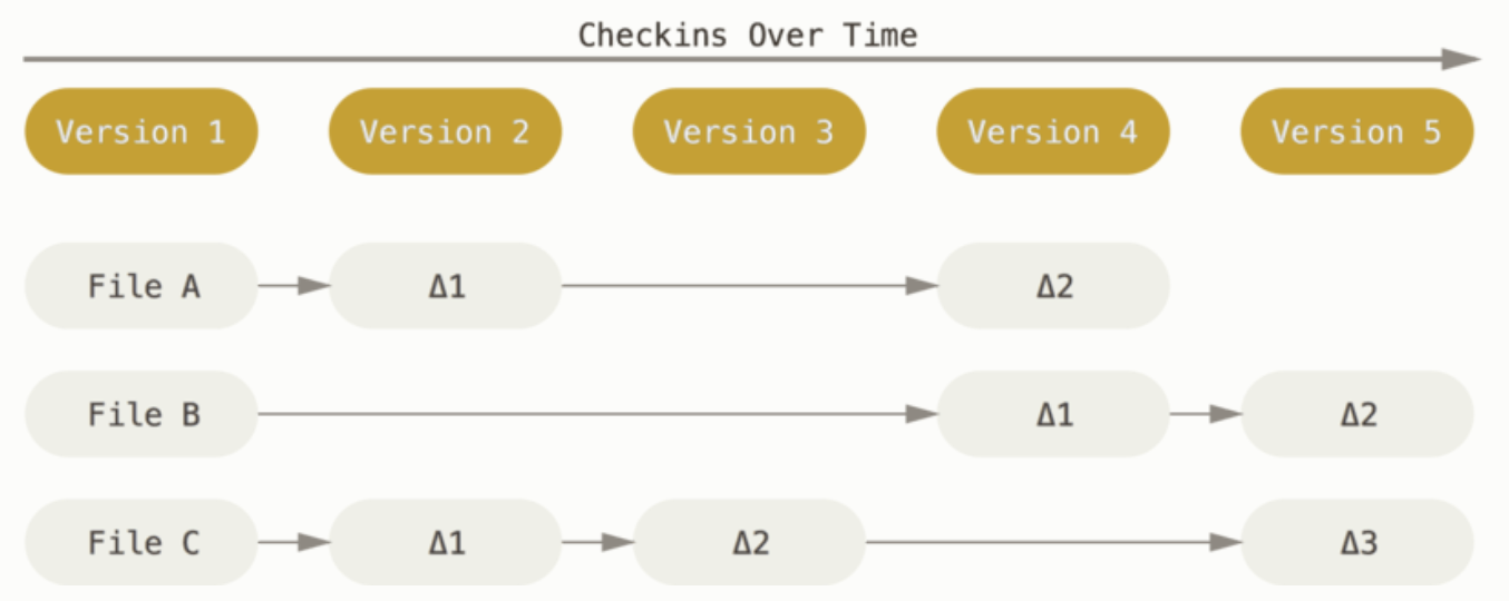 - Git은 마지막 커밋의 스냅샷만 통째로 저장하고 나머지 커밋에 대해서는 스냅샷과 스냅샷의 차이를 기록한 '델타'를 저장한다.